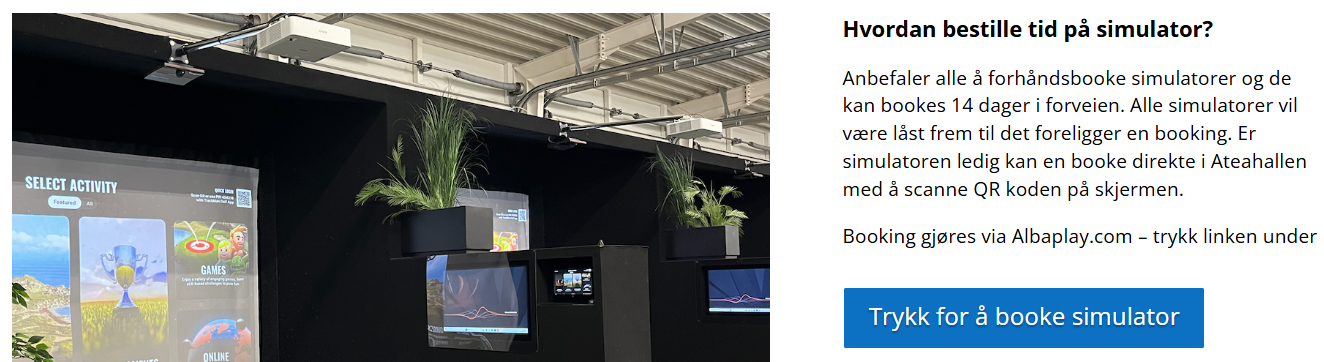 Fra og med fredag 12.09 så vil en booke timer på simulatorene i Ateahallen via vår hjemmeside